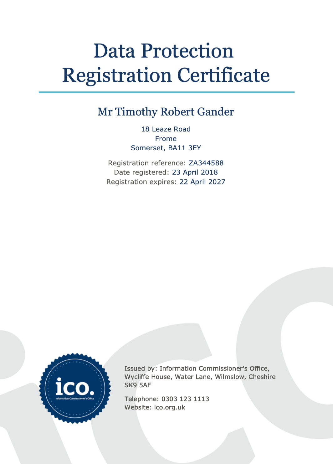 GDPR Statement and Certificate